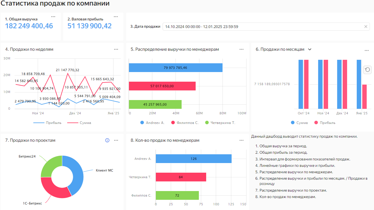 Вы можете легко и быстро создать отдельный график, для анализа конкретной ситуации, или собрать полноценный аналитический дашборд с ключевыми бизнес-параметрами для своей компании или команды.Публикация графиков и дашбордов на сайте