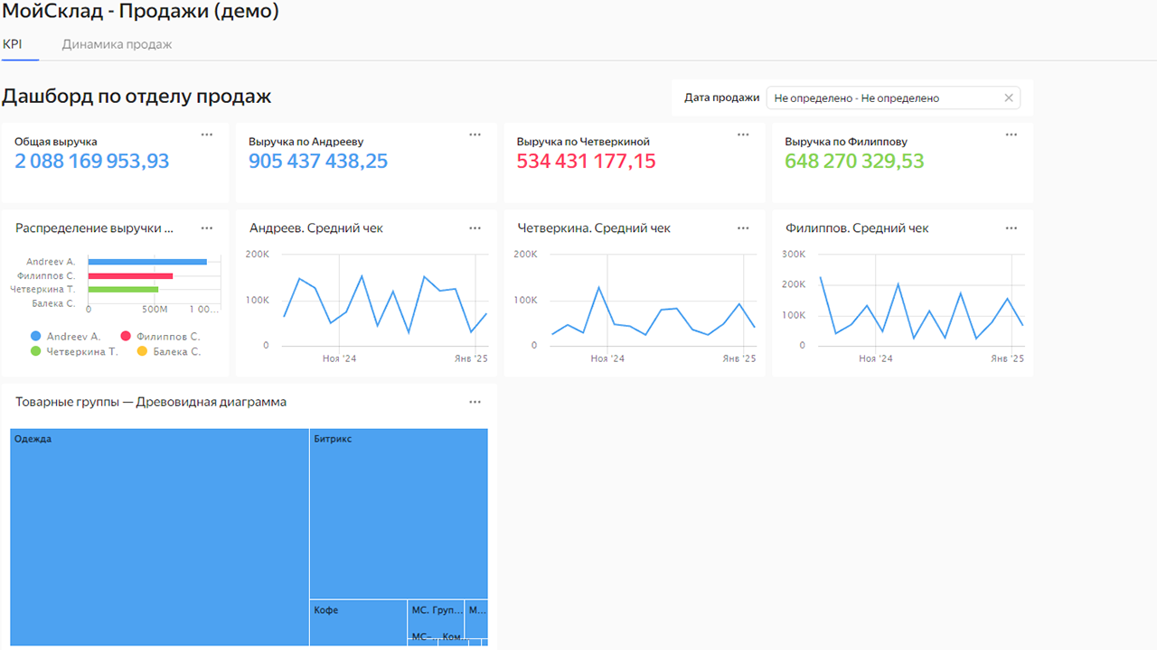 Аналитика BI — это сервис интеграции МоегоСклада с Yandex DataLens, российской системой визуализации данных, которую можно применять как для обычного анализа данных, так и для решения задач бизнес-аналитики. Вы можете строить диаграммы и графики и объединять их в пользовательские дашборды.