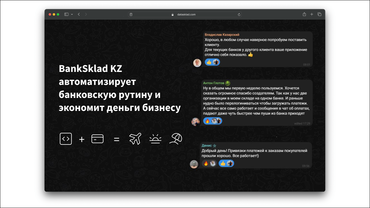 Если вашего банка нет в список доступных, напишите нам на почту или в телеграм, постараемся быстро добавить с ним интеграцию.