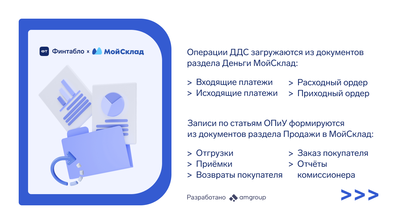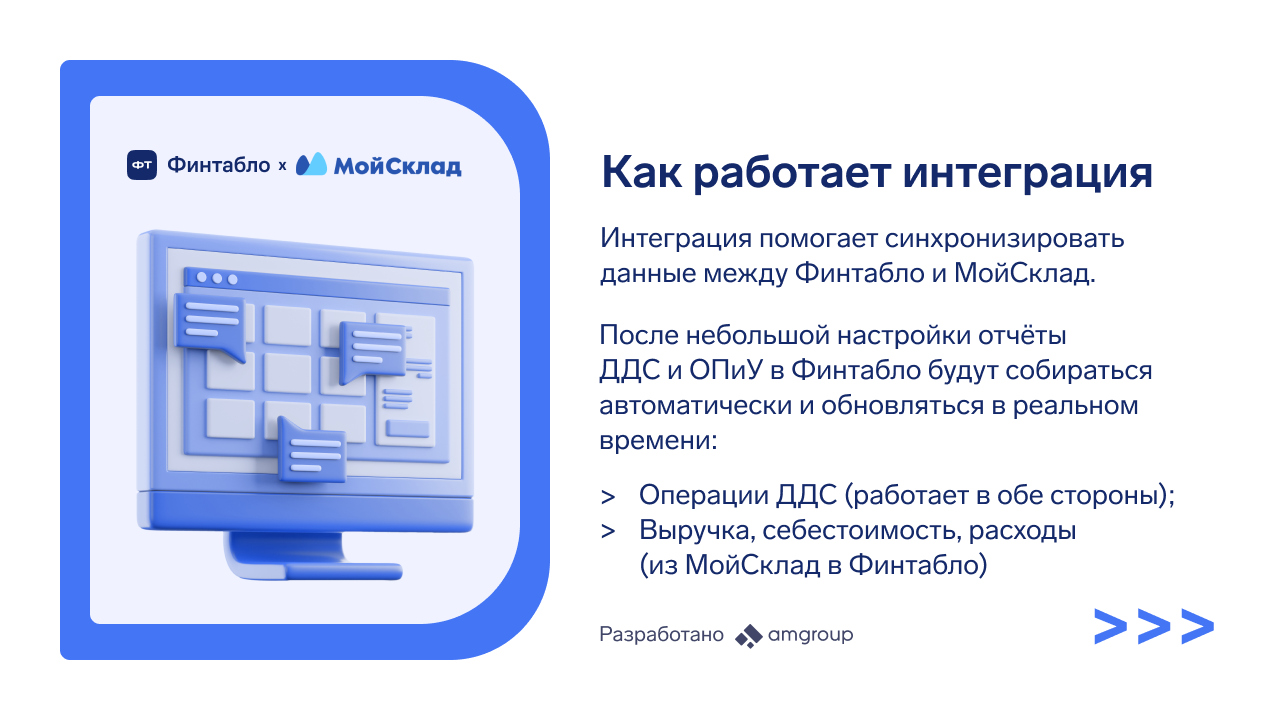 Синхронизация данных между Финтабло и МоимСкладом. В ОПиУ из МоегоСклада автоматически появляется выручка и себестоимость на основе документов отгрузок и приёмок в МойСклад.