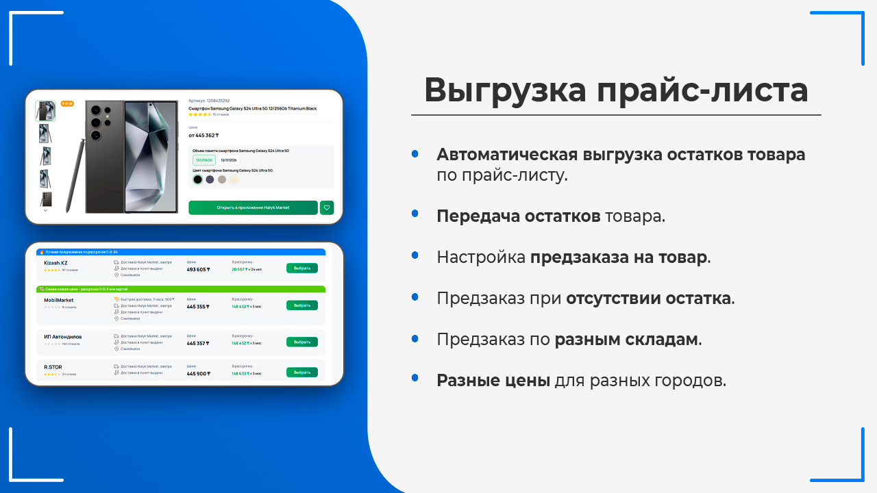 Команда Smart Innovations Development разработала решение для работы с маркетплейсом Halyk Market, которое включает в себя ряд возможностей, чтобы ваш бизнес вышел на новый уровень автоматизированной торговли: