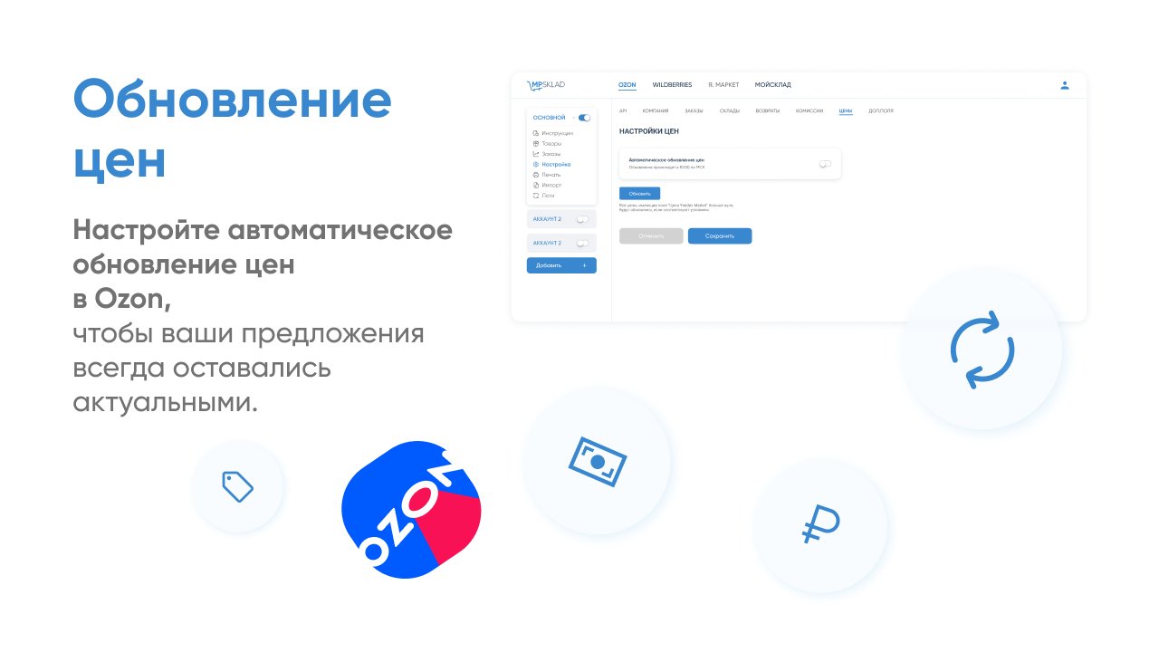 Импорт товаров, цен и остатков из Ozon в МойСклад