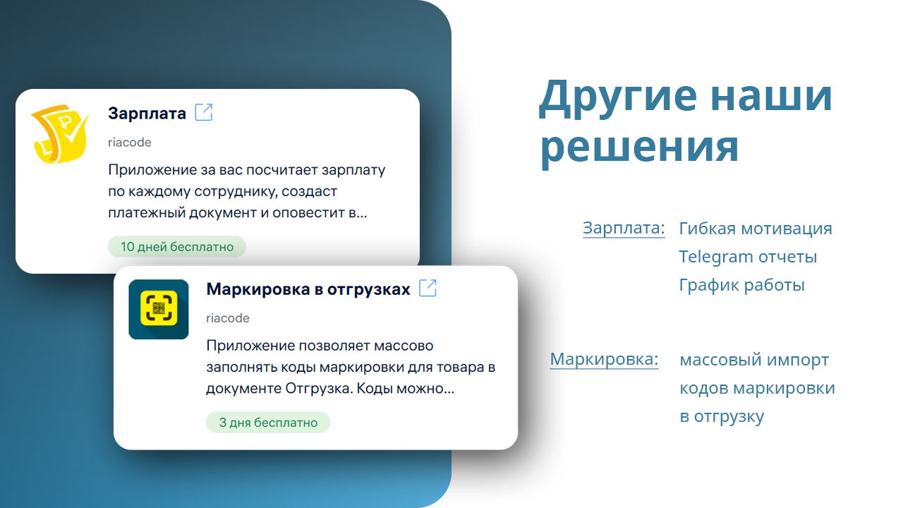 Приложение автоматизирует процесс работы с маркировками. • Виджет…
